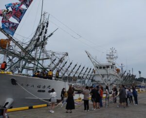 8月6日(水)、漁の解禁を前に大型サンマ船6隻が北海道に向け小名浜港を出港しました。