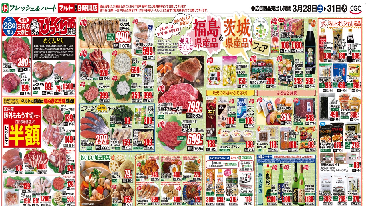 令和8年3月28日(土)~31日(火)、いわき市内のスーパーマルトにて、福島県産品&茨城県産品フェアを開催します!